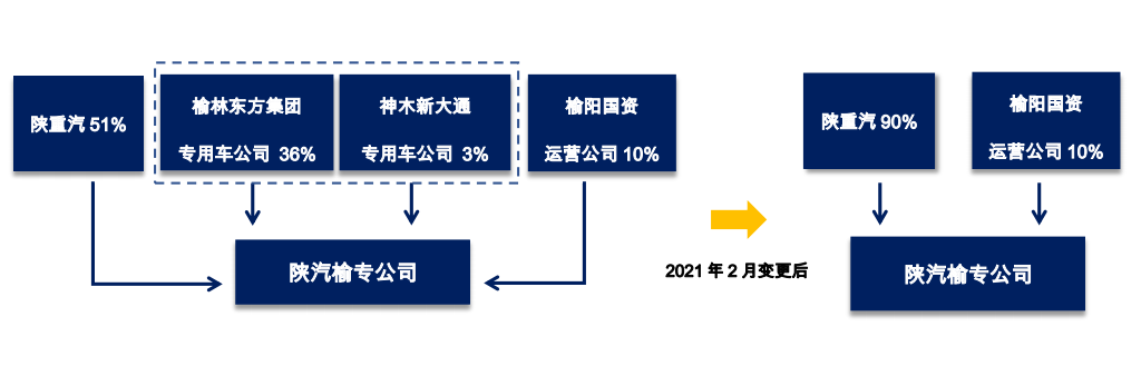 今年2月,經過股權變更,陜重汽和榆林市榆陽區國有資產運營有限公司分別持股90%、10%。