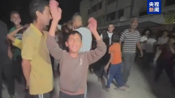 哈馬斯提交對“20點(diǎn)計劃”的回應(yīng)后,加沙民眾走上街頭進(jìn)行慶祝 (圖片來源:央視新聞)