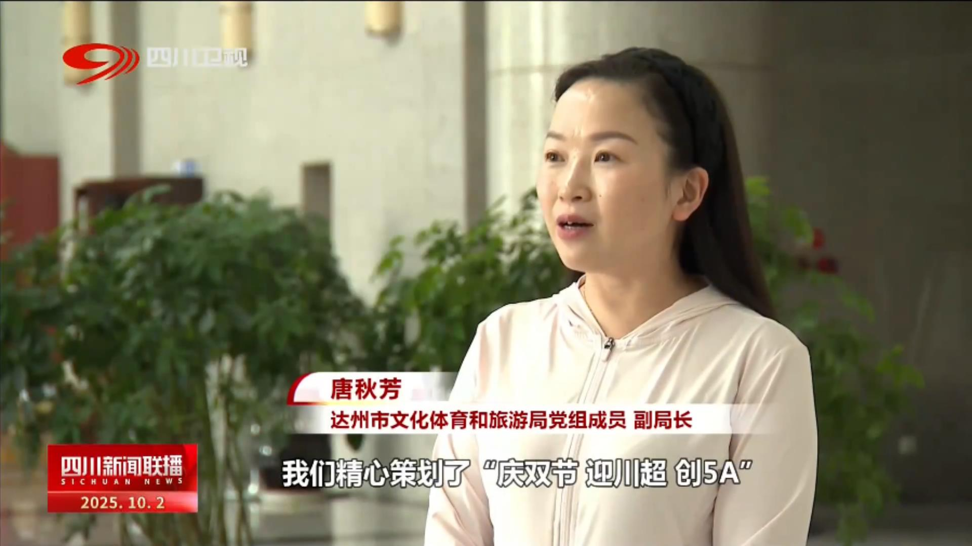 達州市文化體育和旅游局黨組成員、副局長 唐秋芳:我們精心策劃了“慶雙節 迎川超 創5A”文旅嘉年華活動,同步舉行秋游達州促消費活動,發放文體旅消費券150萬元,吸引更多游客走進達州,親身感受“巴風賨韻?安逸達州”的獨特魅力。