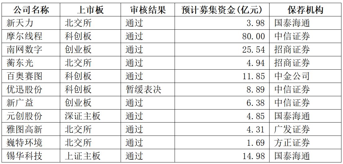 上述12家上會企業中,除了優迅股份被暫緩表決外,其余11家公司全部過會,過會率為91.67%。