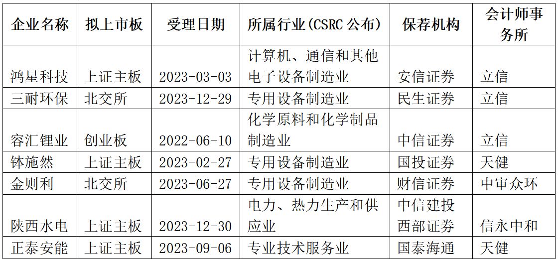 每經記者注意到,上述7家已終止IPO公司均是在2024年之前獲得受理的。其中,在2022年獲受理的容匯鋰業在2023年6月即已獲得首發過會,在2023年6月獲得受理的金則利則在2023年12月即已首發過會,隨后在2024年1月份提交了證監會注冊。