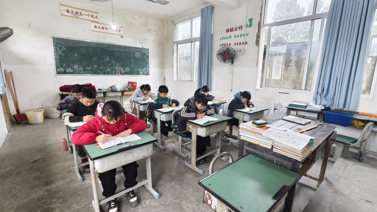 六年級三班的老師龔艷紅,來自重慶渝北區,2020年在孩子僅6個月大時來到石碑村小學。吃住在校的日子里,她把大部分時間都給了“別人家的孩子”,自己的孩子卻成了留守兒童。“孩子現在上幼兒園大班了,我從來沒送過他上學,都是爺爺奶奶照顧。”說起家人,龔艷紅的眼眶不禁泛紅。但村小孩子們的貼心舉動,也成了她堅守的最大動力,有人悄悄帶來自家養的小金魚,有人把舍不得吃的水果揣在兜里分給她……這些細碎的溫暖,總能在她思念家人時帶來慰藉。“從一年級帶到六年級,看著孩子們從懵懂無知變得懂事好學,很有成就感。”