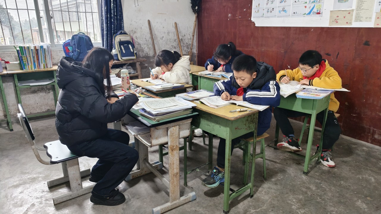 同樣來自重慶的老師米盈盈,已在石碑村小學堅守了五年,英語專業的她承擔了學校主要的英語教學任務。“低年級重點培養好習慣,中年級注重自覺性和獨立性養成。”除了課堂教學,她還鼓勵孩子們課后幫家人做力所能及的農活,放假時收集孩子們的勞動視頻,在家長群里分享孩子們的成長點滴。米盈盈最大的心愿是讓孩子們不僅學好知識,更能擁有善良、樂觀的美好品質,健康快樂地成長。