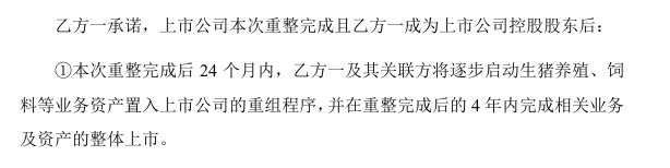 根據正邦科技公告,“雙胞胎”承諾:“雙胞胎”及關聯方在重整完成后的24個月內啟動資產注入計劃;“雙胞胎”及關聯方將于取得上市公司控制權后的2年內,啟動業務/資產注入上市公司的法定程序。